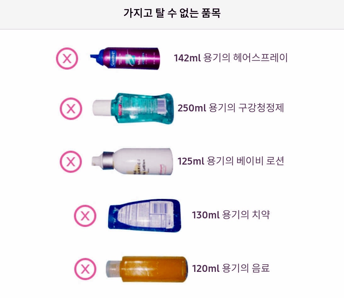 - 🍼 유아용 액체식품: 아기 분유, 이유식 등 제한 없이 허용 (보안 검사 필요)